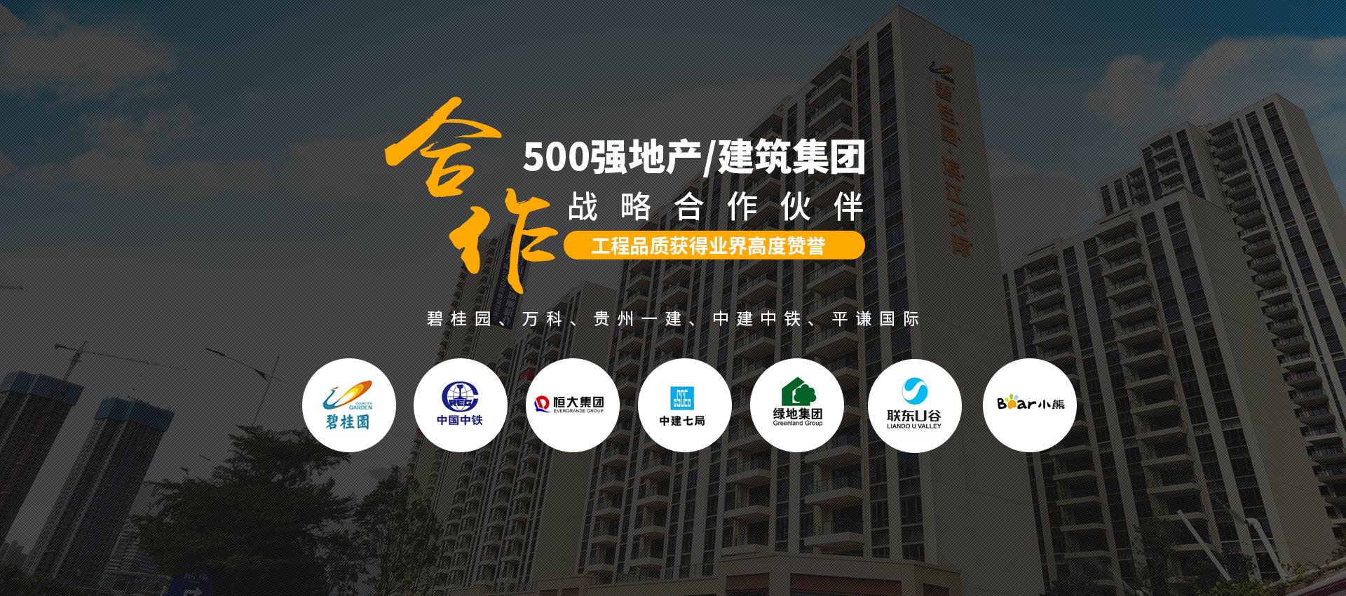 500強(qiáng)指定合作:與“碧桂園、萬科、貴州一建、中建中鐵、平謙國際、恒大、雅居樂”等地產(chǎn)/建筑集團(tuán)建立長(zhǎng)期的戰(zhàn)略合作關(guān)系。